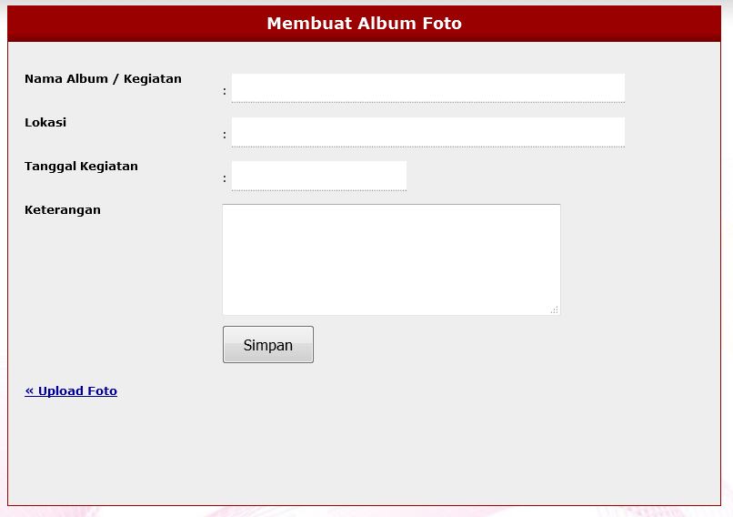 - Setelah itu klik tulisan “Buat Album Baru”, maka akan muncul form baru untuk membuat nama album dan keterangan foto galeri seperti :