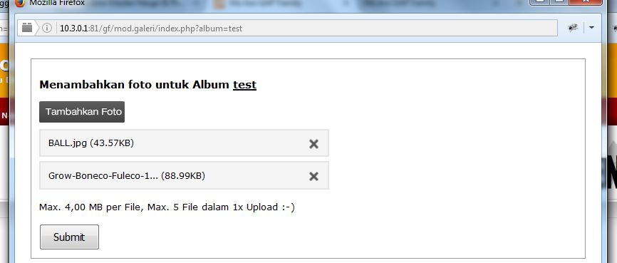 Klik tombol Tambahkan Foto untuk upload foto-foto yang akan dimasukan, setelah selesai klik submit.
