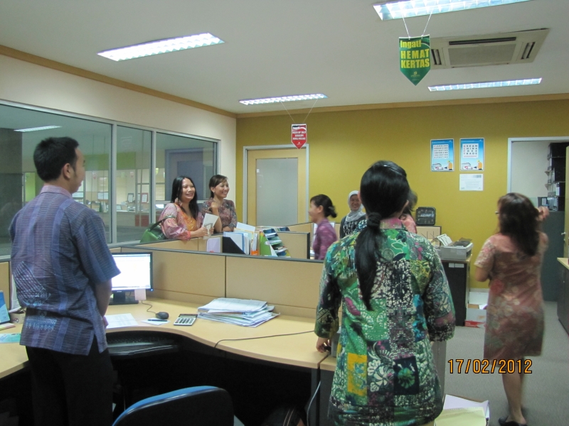 Keterangan: Ibu Deborah Hutauruk selaku AMD HRD PT Penerbit Erlangga berkunjung ke PT Gelora Aksara Pratama pada hari Jumat (17/2). Beliau sedang memberi pangarahan dan masukan kepada tim Akunting, di ruang Akunting.